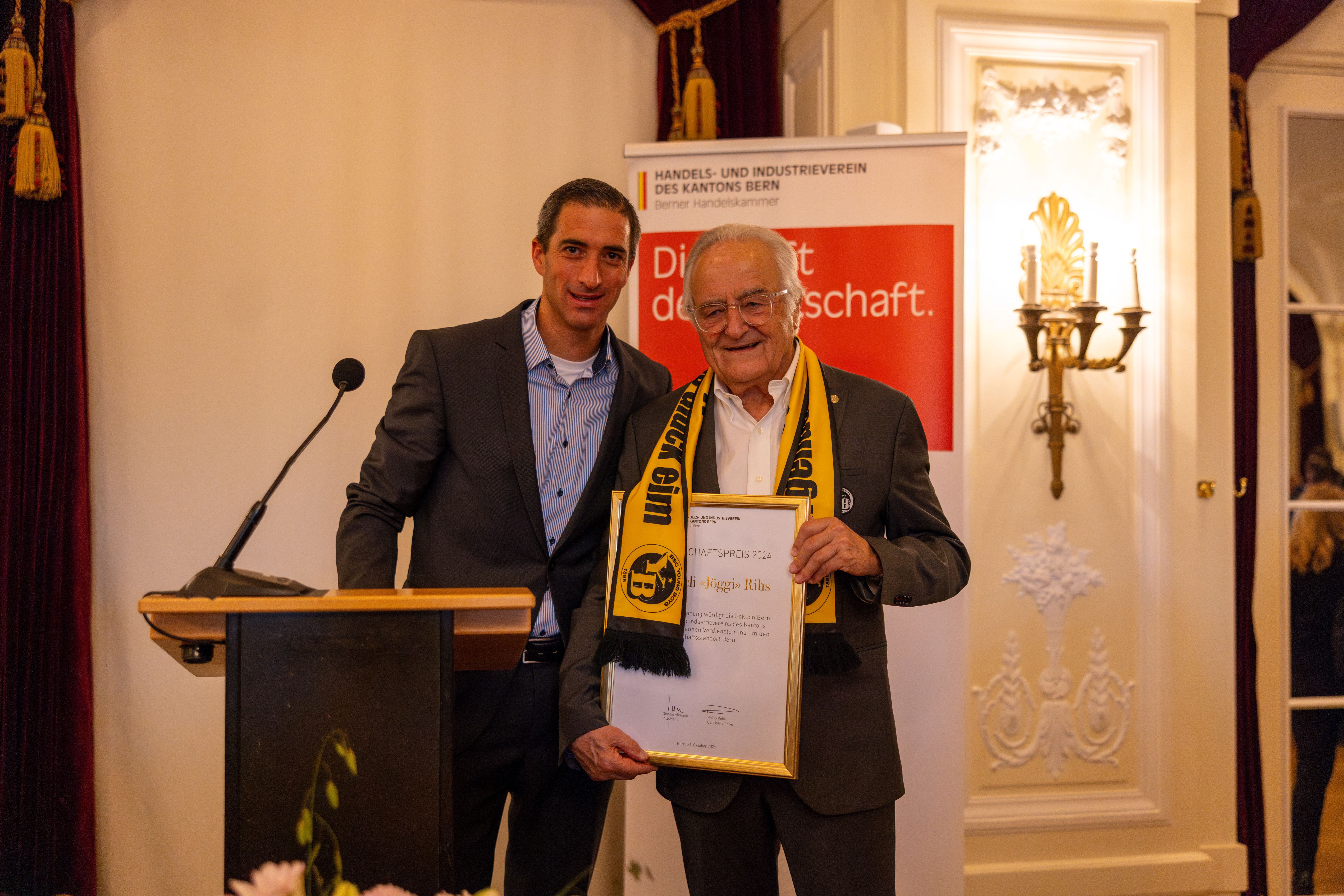 An der 39. Ausgabe der Verleihung des HIV-Wirtschaftspreises ehrt die Sektion Bern des Handels- und Industrievereins des Kantons Bern Jöggi Rihs. Der Besitzer der Berner Young Boys und des Stadions Wankdorf gewinnt den 1985 ins Leben gerufenen Wirtschaftspreis. Die renommierte Auszeichnung wird jährlich an eine Persönlichkeit verliehen, die einen ausserordentlichen Beitrag für den Wirtschaftsstandort Bern leistet. Mit über 400 Gästen war die glanzvolle Veranstaltung ein grosser Erfolg.