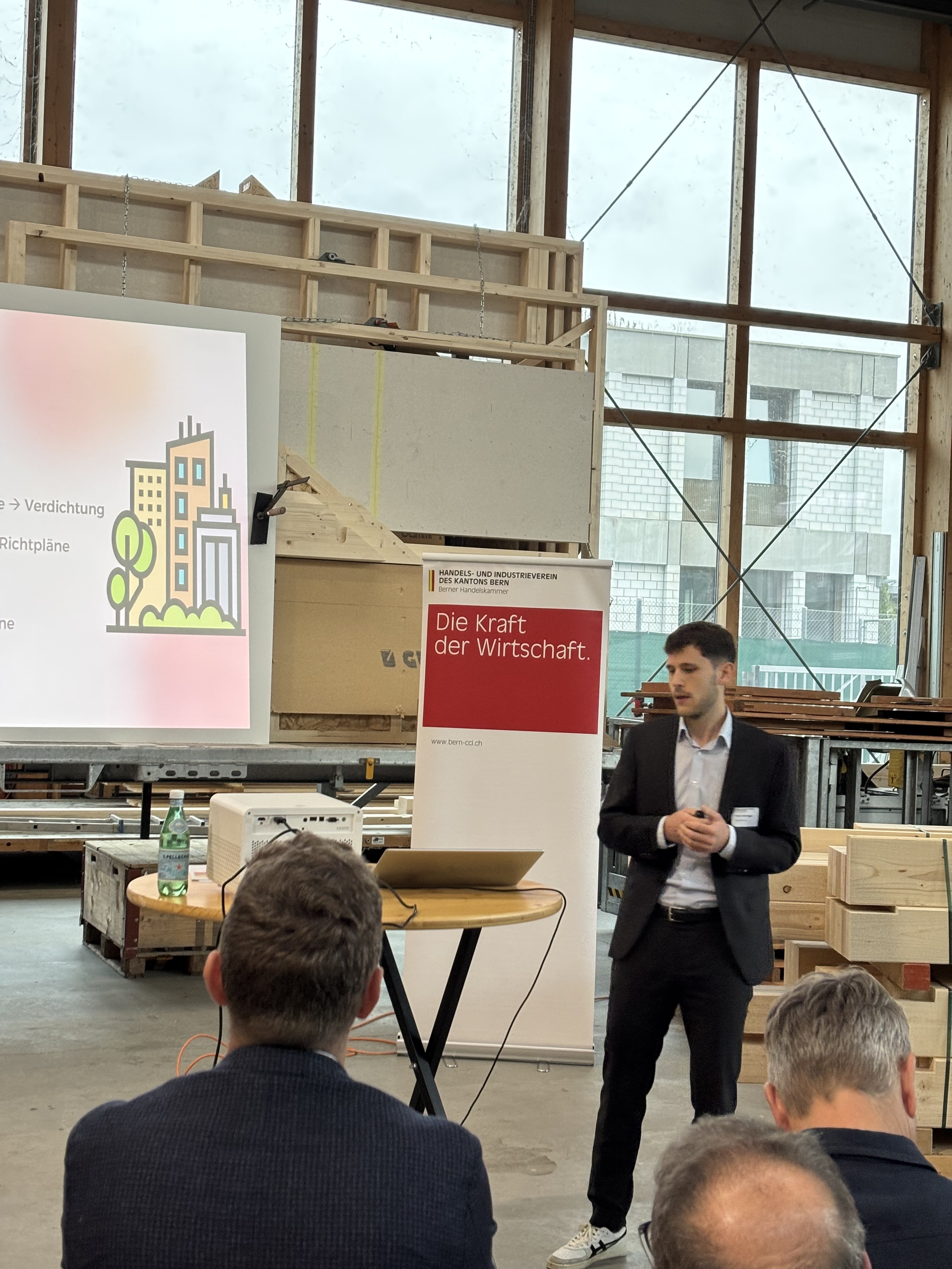 Im fachlichen Teil folgte ein Inputreferat von Fabian Scheidegger, Experte für Wirtschaftspolitik und Raumplanung bei economiesuisse, zum Thema «Die föderale Raumplanung: Rollen, Kompetenzen und Konflikte». Anschliessend stellte Amélie Evard, Geschäftsführerin der Sektionen Biel-Seeland / Berner Jura und Lyss-Aarberg, aktuelle Bau- und Planungsvorhaben in der Region vor.